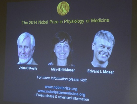 挪威英国3名科学家获2014诺贝尔生理学或医学奖,因发现大脑定位系统细胞。