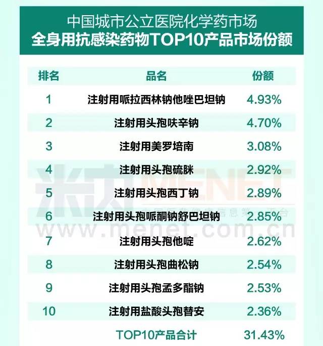 中国城市公立医院化学药市场分析一(抗感染药 消化 血液)