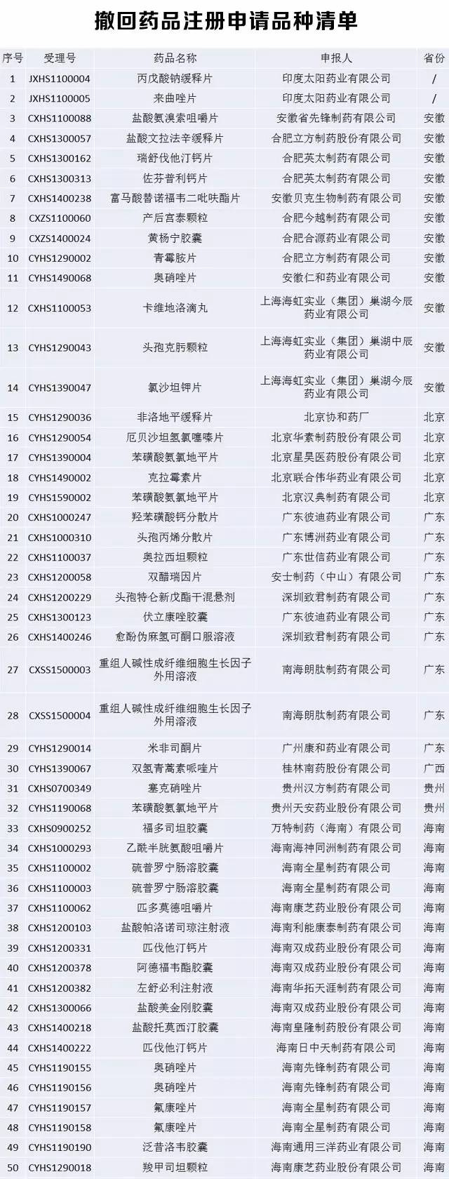 11月30日讯 11月26日,CFDA官方网站发布了《关于90家企业撤回164个药品注册申请的公告(2015年第255号)》。公告称,《关于广东百科制药有限公司等八个企业撤回注册申请的公告》(国家食品药品监督管理总局公告2015年第222号)发布后,CFDA收到了90家企业提出的164个药品注册撤回申请。详细清单见下图: