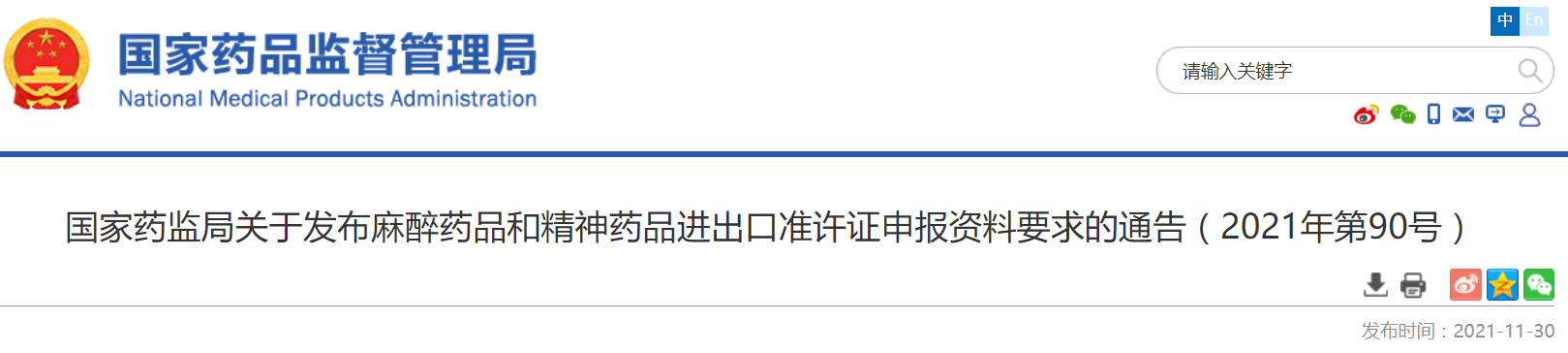 国家药监局发布麻醉药品和精神药品进出口准许证申报资料要求